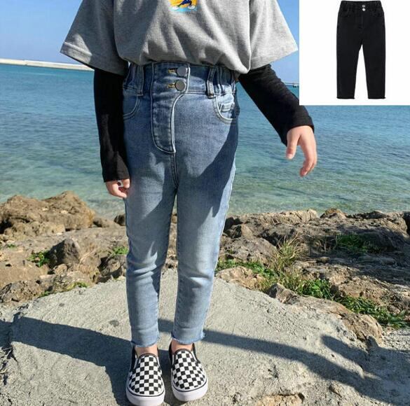 【海外からの取り寄せ】秋 女の子 ハイウエスト デニムパンツ ジーンズ 韓国子供服 ロングパンツ カジュアル スキニー #[ckd102690_13400]【送料込み】【250506】