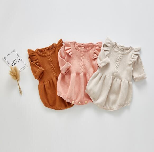 【海外からの取り寄せ】秋 ベビーロンパース ニット 無地 オールインワン フリル 男女兼用 子供服 ロンパース 出産祝い #[ckd102909_21000]【送料込み】【250503】