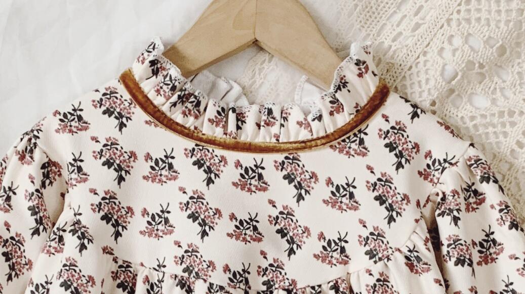 【海外からの取り寄せ】秋 女の子 総柄ワンピース ダックネック 森ガール おしゃれ 子供服 花柄 ワンピース 長袖 #[ckd102765_13000]【送料込み】【250525】