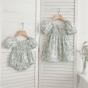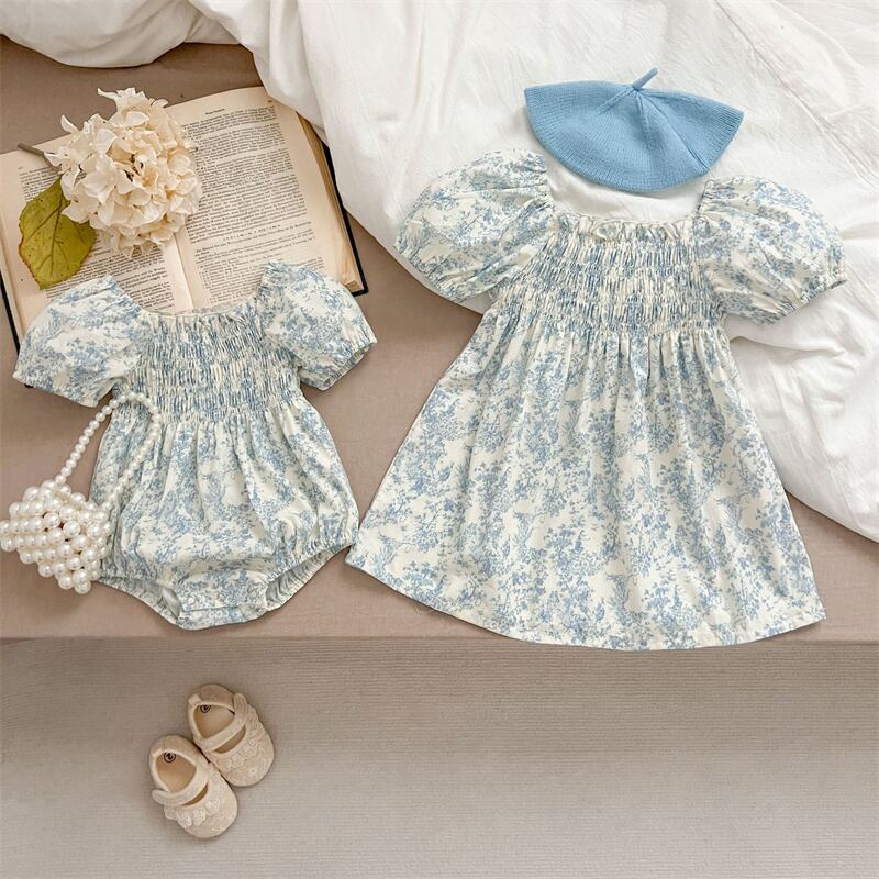 【海外からの取り寄せ】2024夏新作 子供服 姉妹お揃い スクエアネック ロンパース ワンピース 選べる2タイプ 可愛い 花柄 #[ckd1093520_17700]【送料込み】【250502】