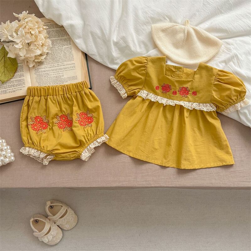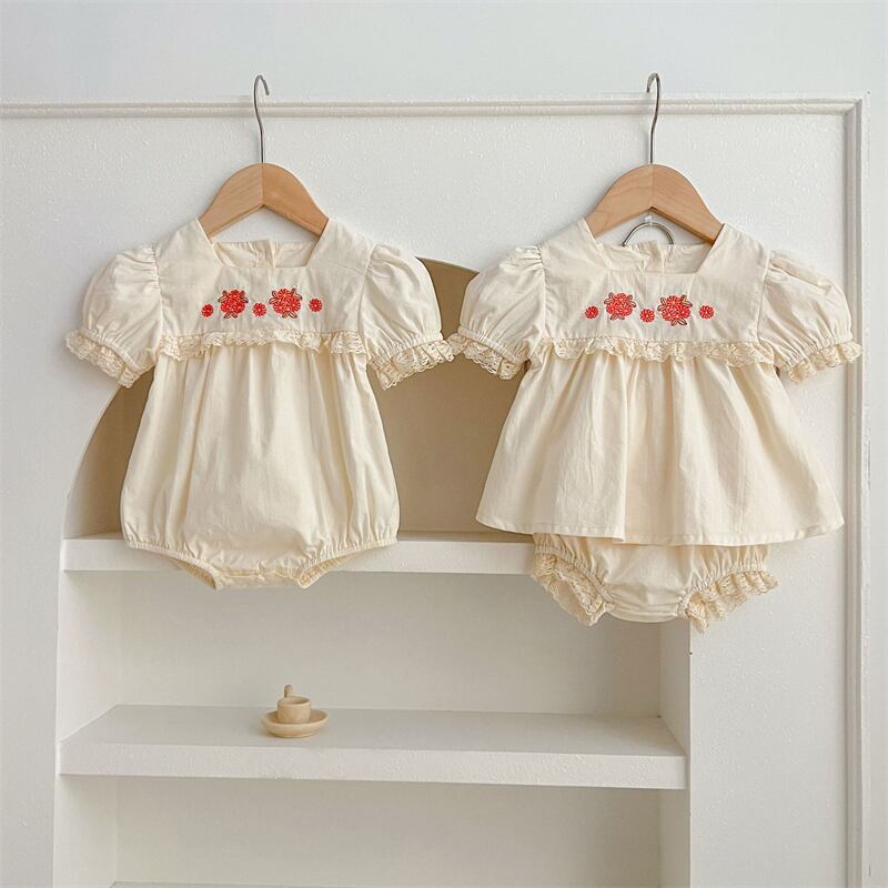 ins 夏 韓国子供服 女の子 レース 出産祝い カバーオール 女児 カジュアル トップス&ブルマー