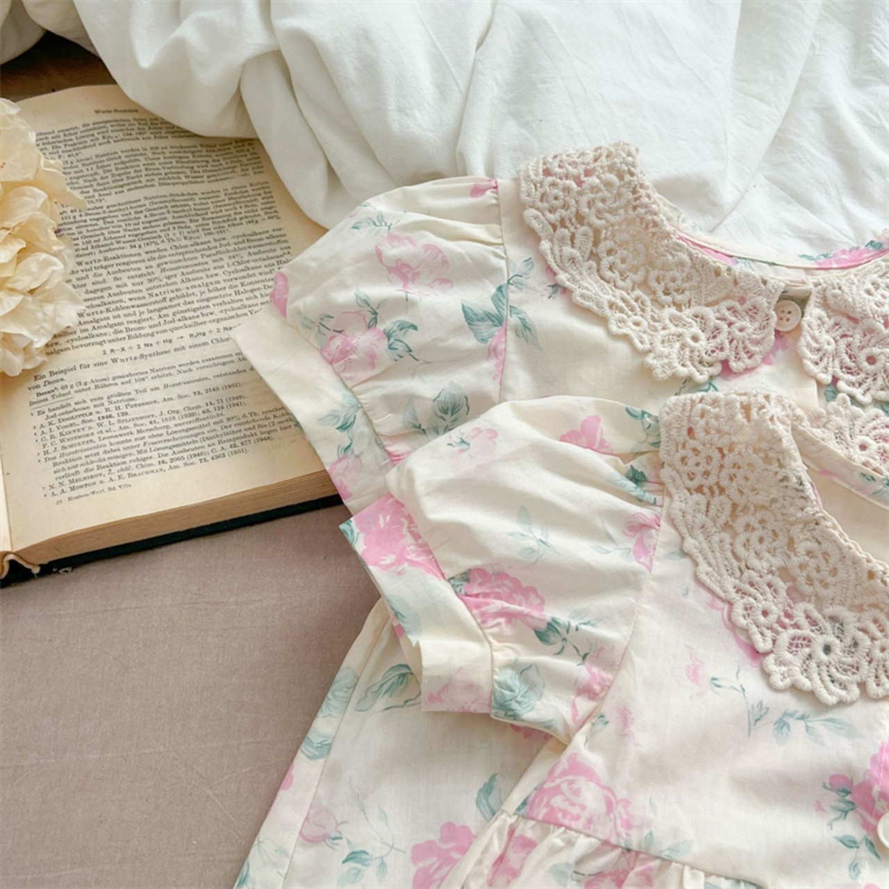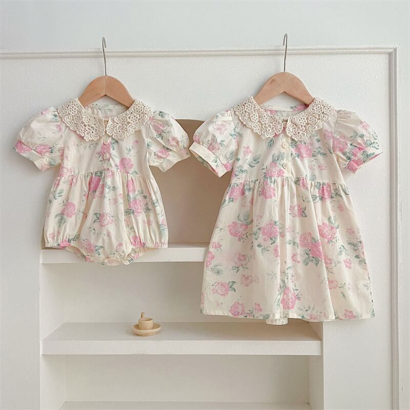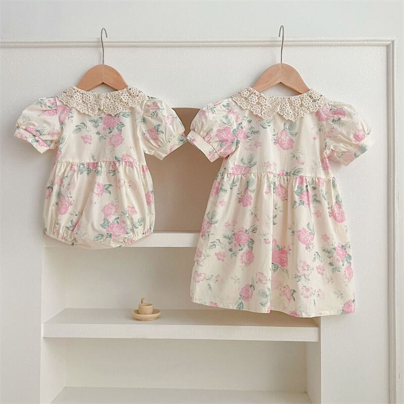 2024夏新作 子供服 姉妹 お揃い 選べる2タイプ レース襟 ロンパース ワンピース 半袖 花柄 薄手 #[ckd1093516_17100]【送料込み】【海外からの取り寄せ】 【北海道・沖縄・離島は発送できません】