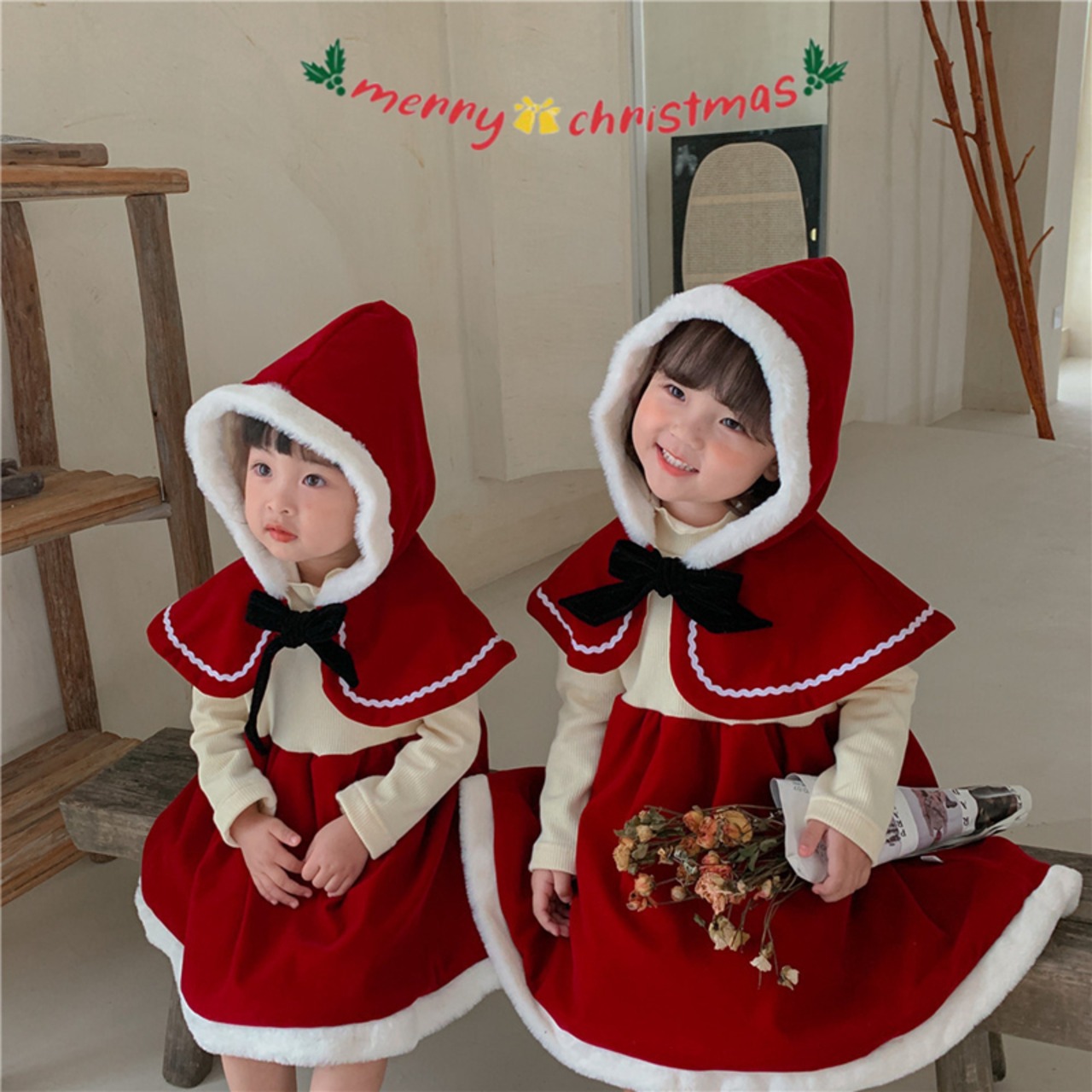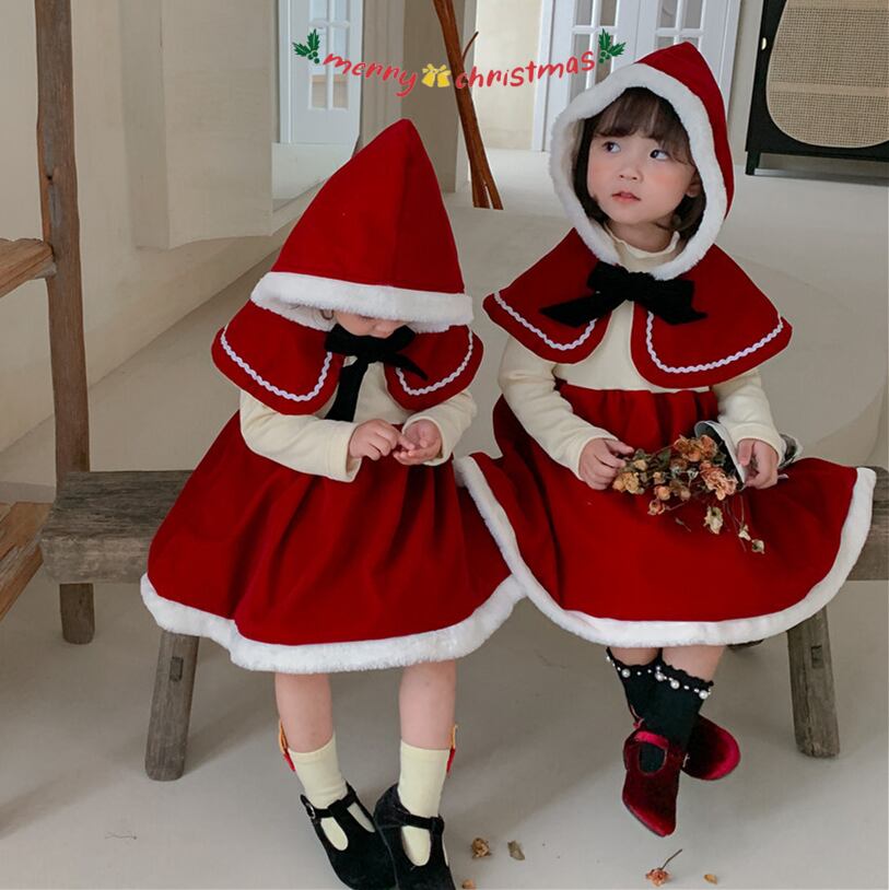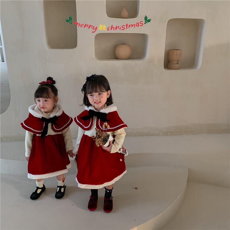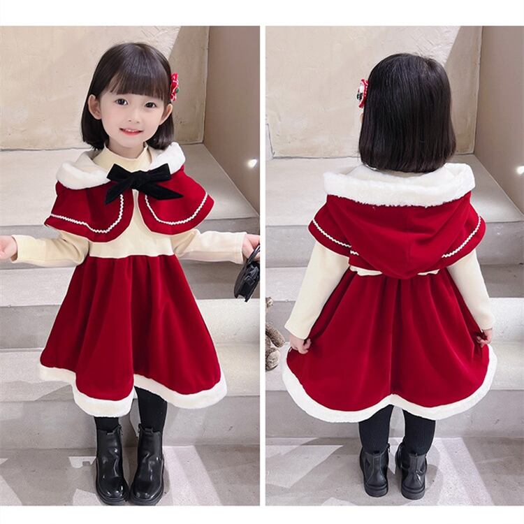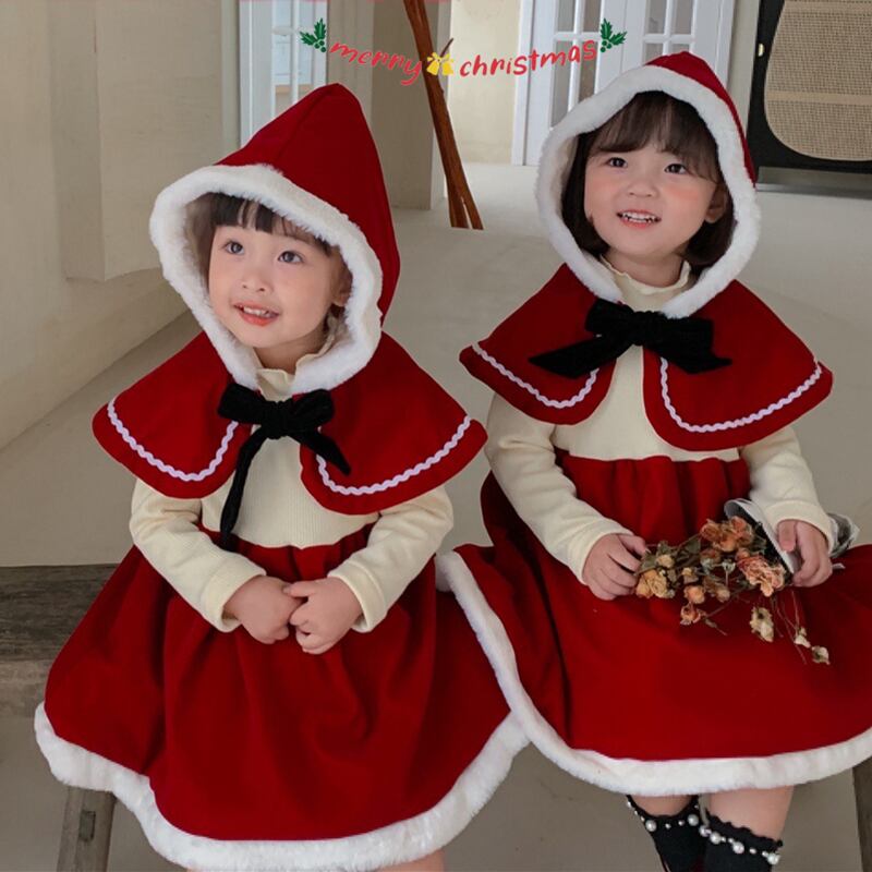 【海外からの取り寄せ】ins サンタ服 クリスマス マント ワンピース 2点セット ベビー服 可愛い 子供服 コスプレ #[ckd1091228_28600]【送料込み】【251210】