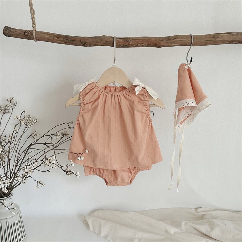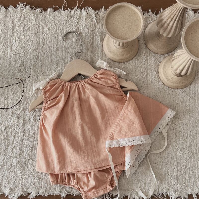 【海外からの取り寄せ】2024夏新作 ベビー服 女の子 セットアップ ベスト&ブルマー&ロボンネット 可愛い おしゃれ 子供服 #[ckd1093534_18700]【送料込み】【250430】