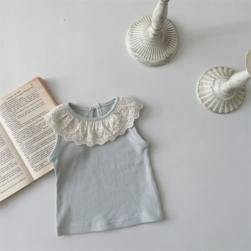 2024夏新作 ベビー服 レース襟 ノースリーブ Tシャツ カジュアル トップス 可愛い 女児 子供服 #[ckd1093537_10600]【送料込み】【海外からの取り寄せ】 【北海道・沖縄・離島は発送できません】