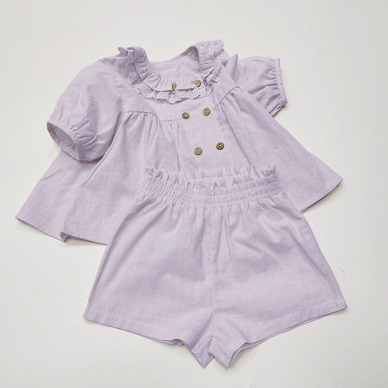 【海外からの取り寄せ】2023夏新作 ベビー服 女の子 セットアップ 半袖 ブラウス ショートパンツ 子供服 可愛い 綿麻風 #[ckd1092117_18700]【送料込み】【250518】