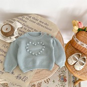 ins 子供服 カジュアル ハートデザイン ニット 子供服 可愛い おしゃれ 無地 長袖 柔らかい
