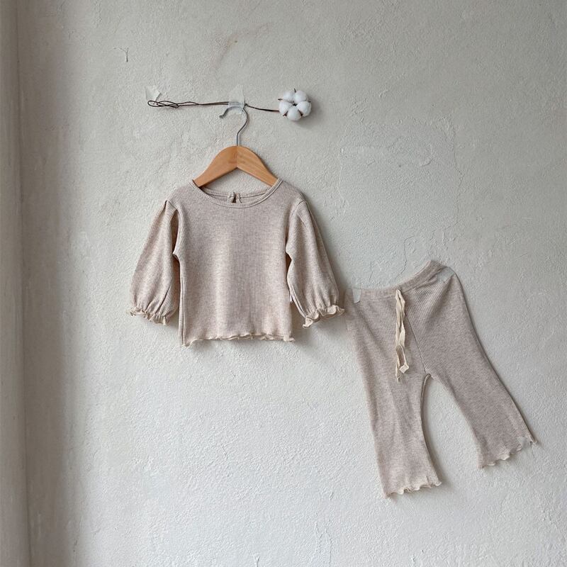 ins 春 秋 キッズ服 カジュアル セットアップ パフスリーブ トップス ボトムス ベビー服 普段着