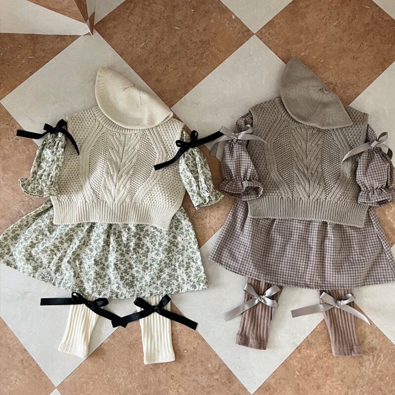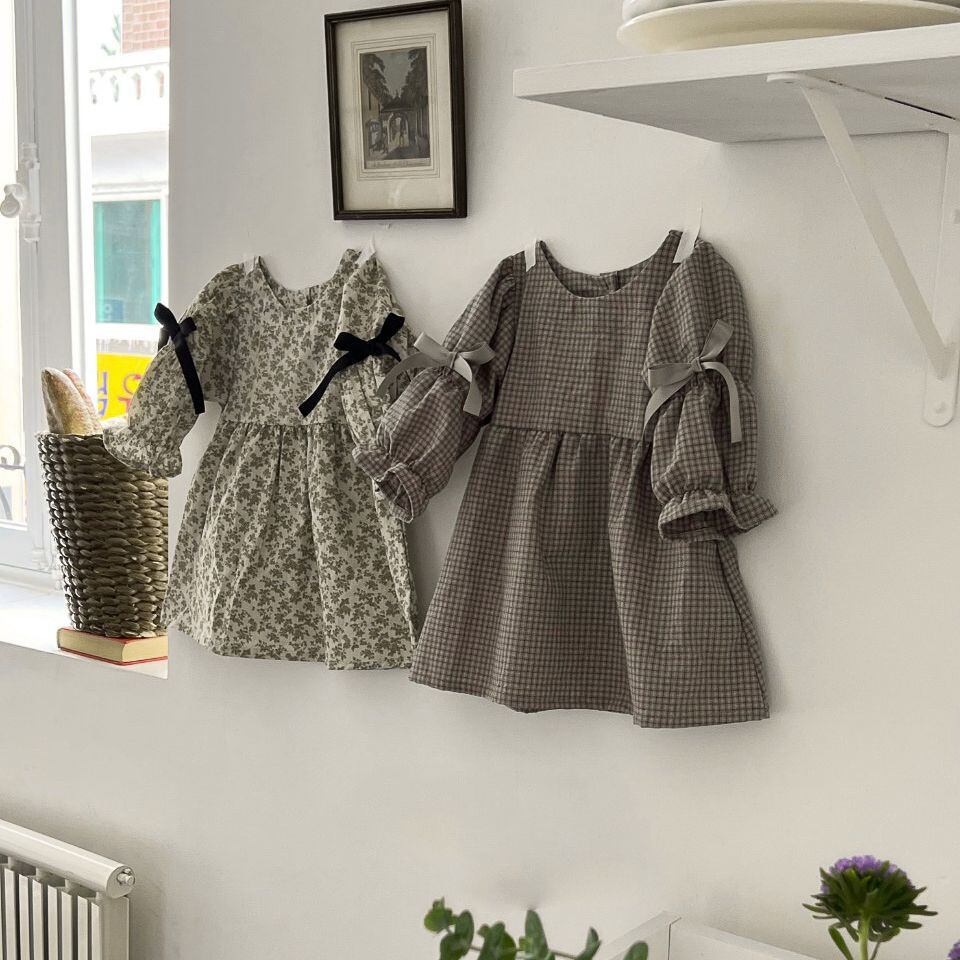 ins 春 秋 森ガール 赤ちゃん カジュアル ワンピース 可愛い パフスリーブ 子供服 普段着