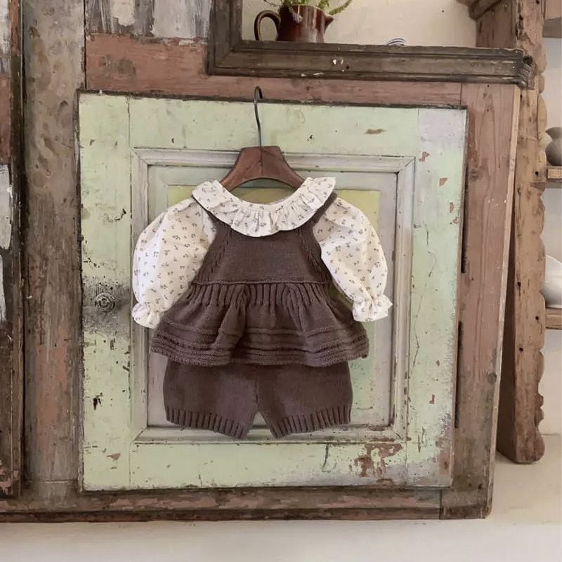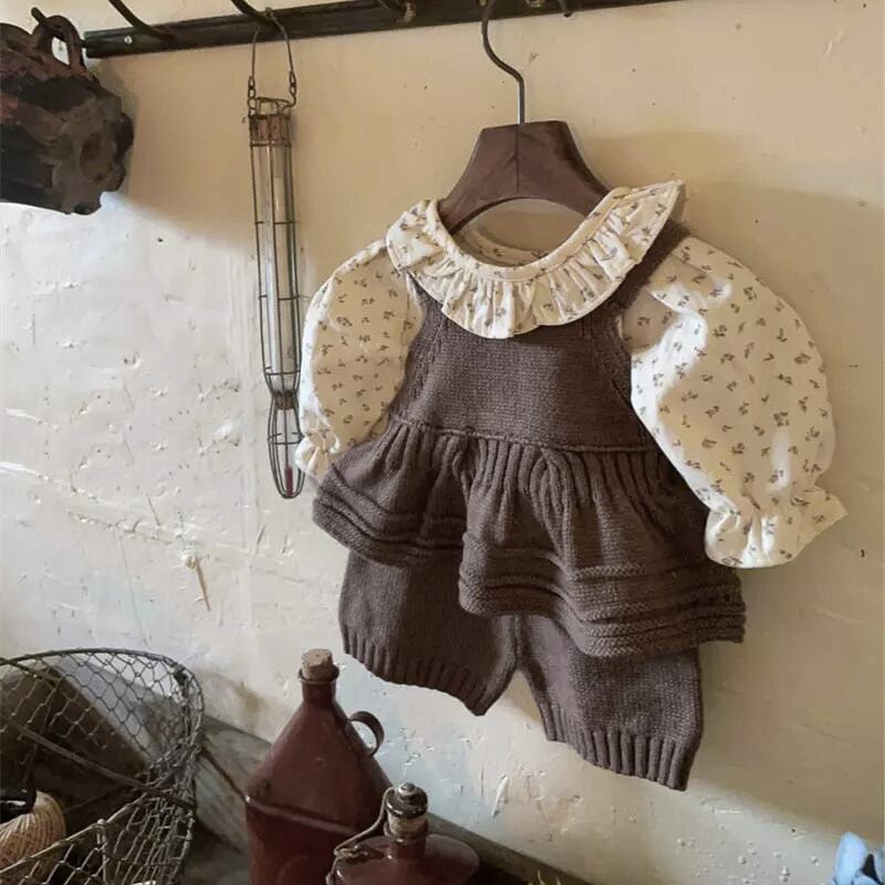 【海外からの取り寄せ】ins 秋新作 ベビー服 セットアップ ニットベスト ショートパンツ 可愛い 子供服 おしゃれ レトロ風 #[ckd1092539_32500]【送料込み】【250924】
