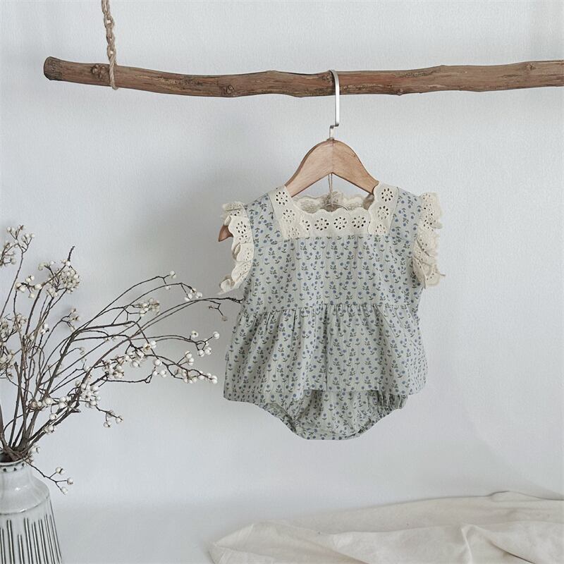 【海外からの取り寄せ】2024夏新作 ベビー服 女の子 レトロ セットアップ レース ベスト ブルマー 可愛い 子供服 新生児 #[ckd1093540_17800]【送料込み】【250517】