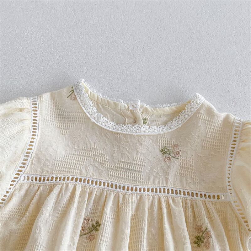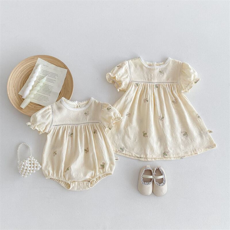 【海外からの取り寄せ】2024夏新作 子供服 姉妹 お揃い 選べる2タイプ レース襟 ロンパース ワンピース 半袖 刺繍花柄 #[ckd1093542_18000]【送料込み】【250502】