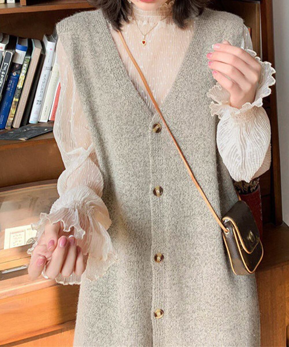 ※デザイン上透け感がございますので、インナーの着用をおすすめ致します。