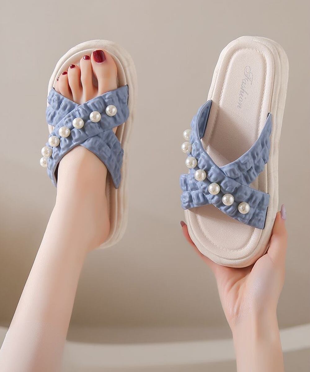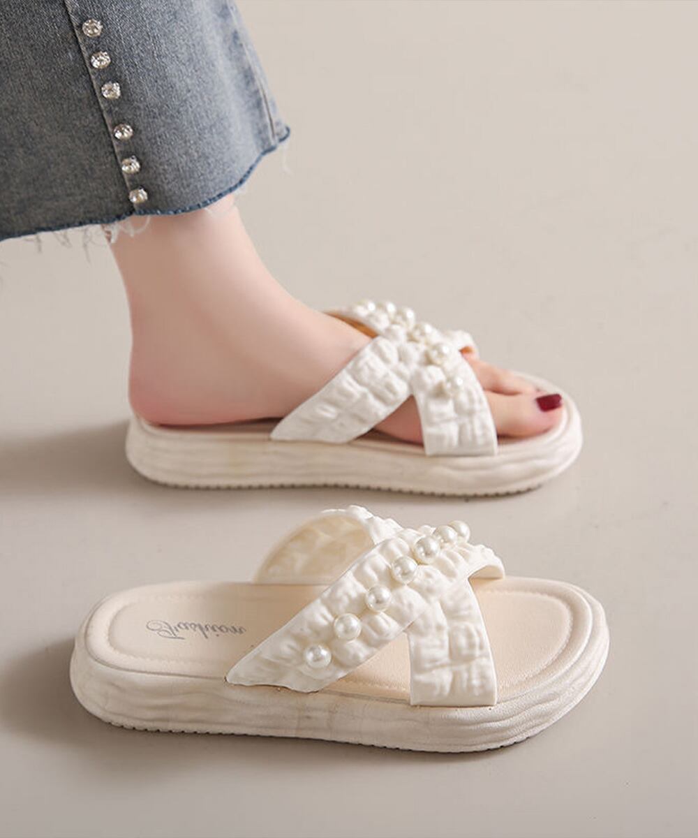 コンフォートサンダル レディース 大人可愛い 歩きやすいフラットサンダル パール付き ビーチサンダル 軽量スリッパ 美脚