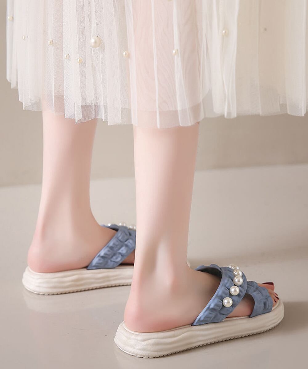 甲ベルトに大きめのパールが飾られ、可愛くておしゃれ度満点のサンダル