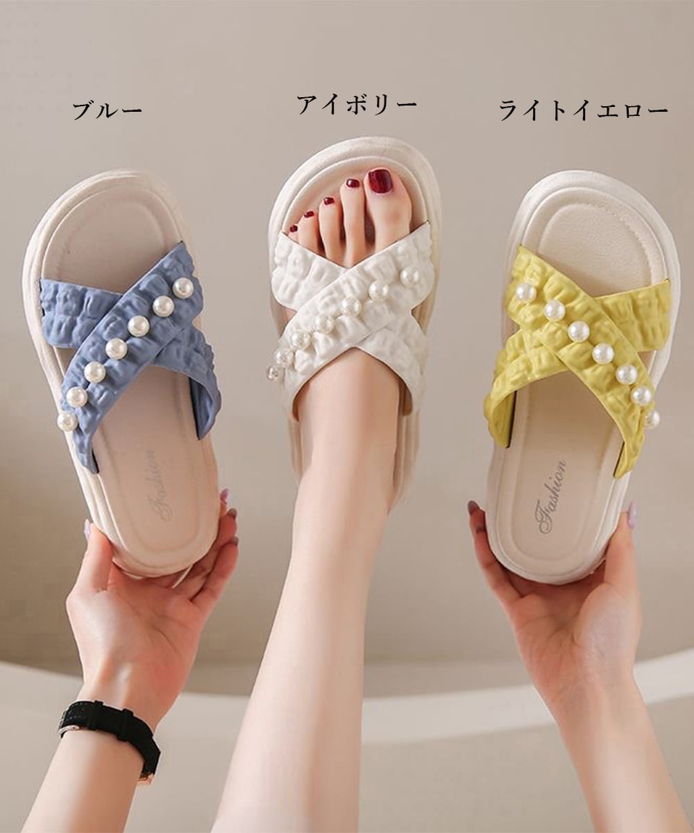 【日本倉庫からの発送】 クロスベルト厚底サンダルスリッパサンダル #[86CHYZ-001_8100]【送料込み】【250915】