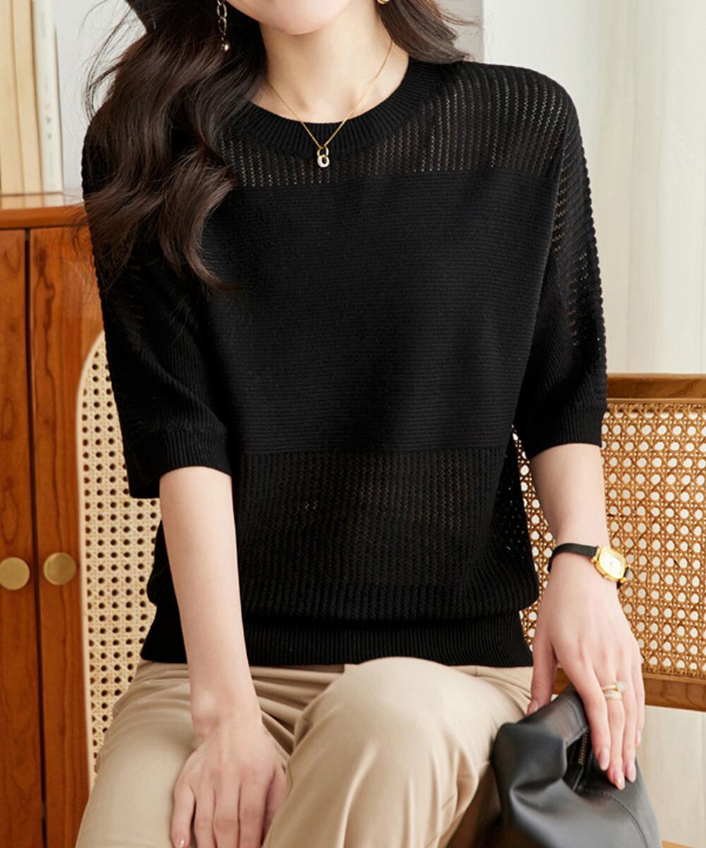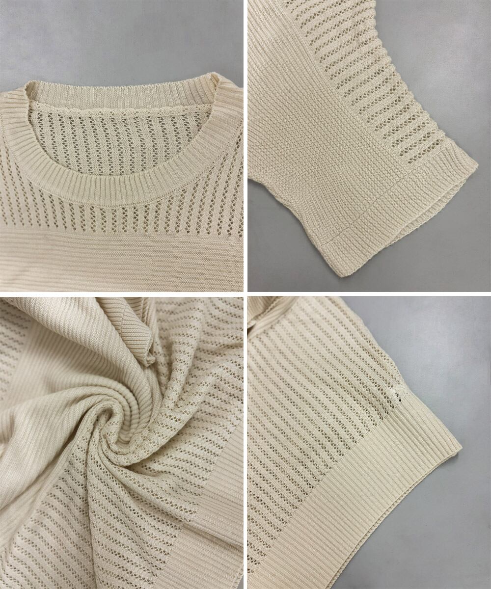1枚取り入れるだけでおしゃれ着こなしが楽しめる透かし編みニットトップス