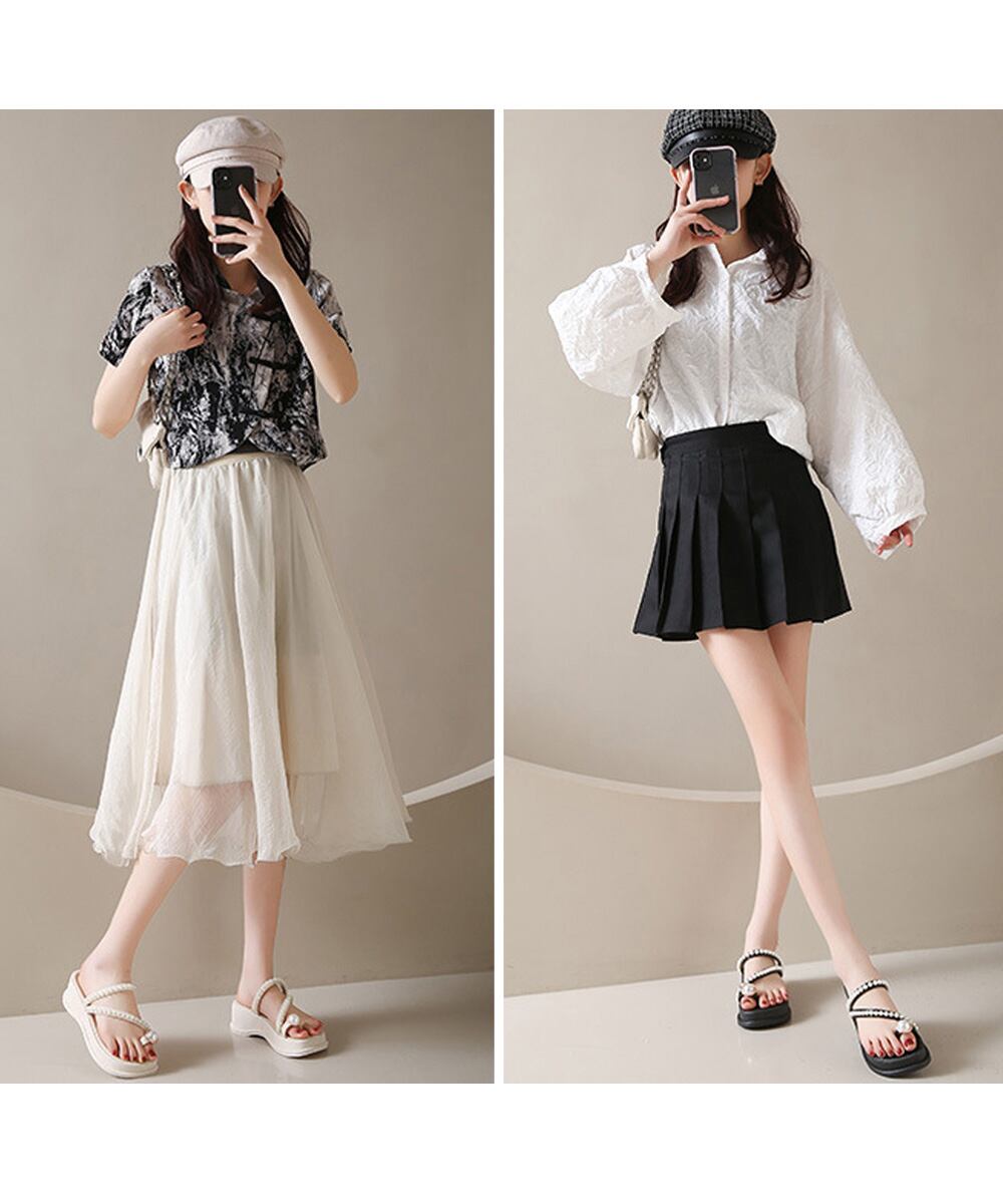 女性らしいワンピースやスカートはもちろん、カジュアルなボトムと合わせ、ハズしアイテムとして履くのもおすすめ