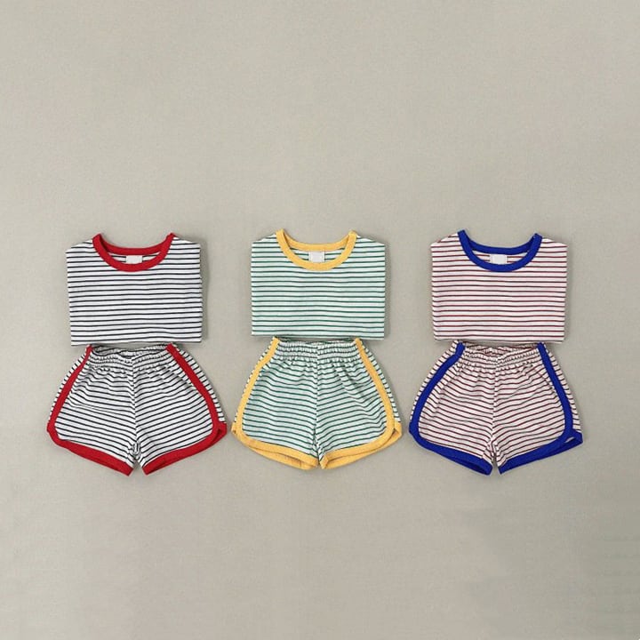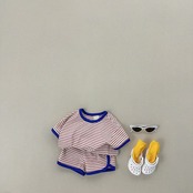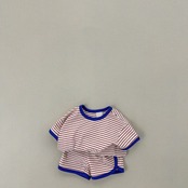 【海外からの取り寄せ】2024夏新作 子供服 セットアップ 半袖Tシャツ ハーフパンツ ボーダー柄 可愛い 柔らかい 男女兼用 #[ckd1093561_14900]【送料込み】【250515】