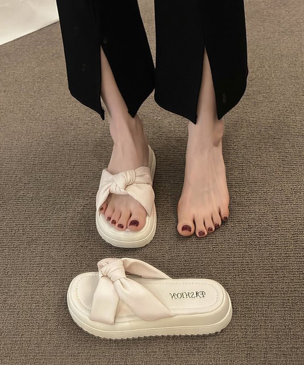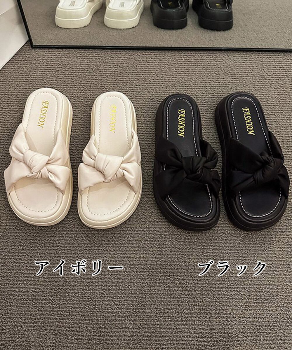 サンダルカジュアル スリッパ サンダル 結びリボンミュール