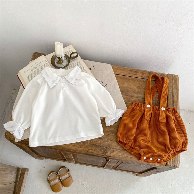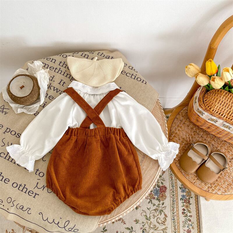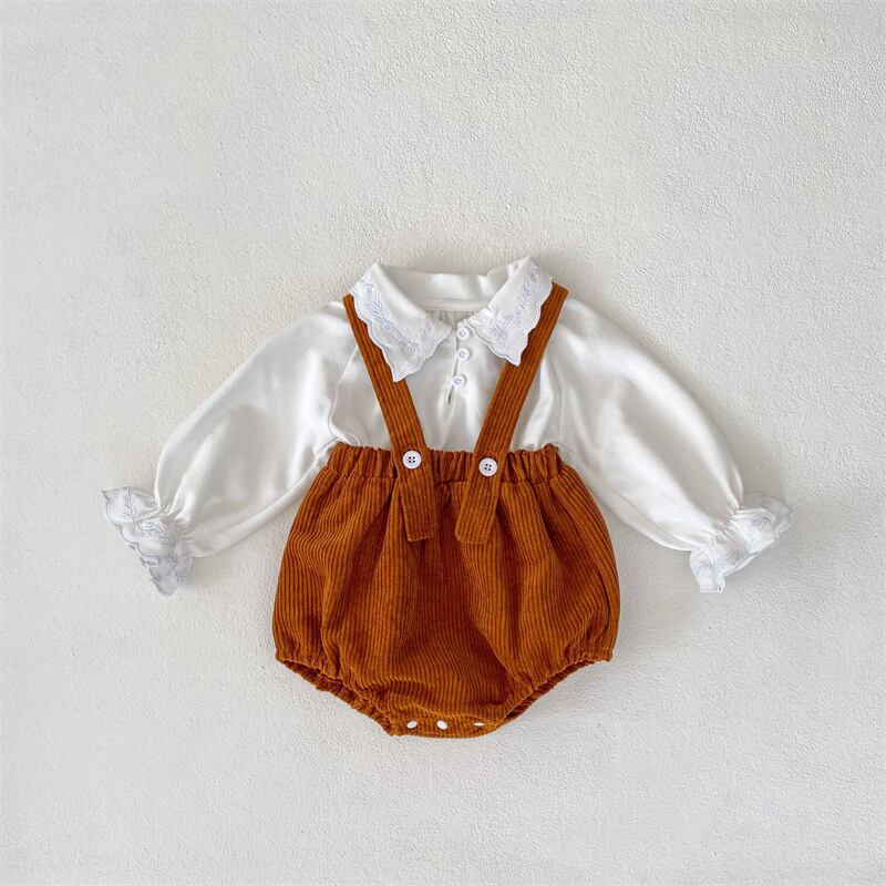 【海外からの取り寄せ】2023秋新作 ベビー服 女の子 セットアップ 刺繍 シャツ&ロンパース 可愛い おしゃれ 子供服 無地 #[ckd1092630_23700]【送料込み】【250518】