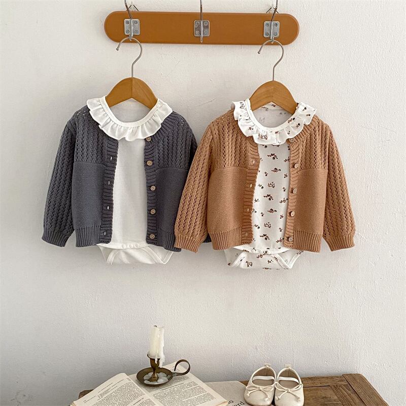 【海外からの取り寄せ】2023秋新作 ベビー服 ラッフル襟 ロンパース 無地 花柄 ニット カバーオール 可愛い 長袖 子供服 #[ckd1092738_15300]【送料込み】【250422】