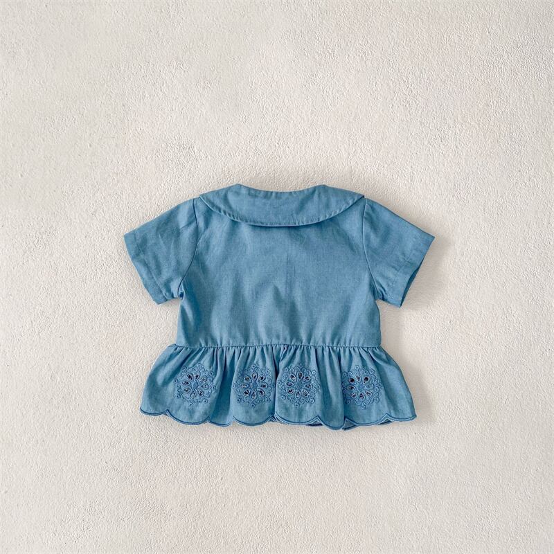 【海外からの取り寄せ】2024夏新作 ベビー服 女の子 デニム セットアップ 刺繍 半袖 シャツ ブルマー 可愛い 子供服 #[ckd1093586_20700]【送料込み】【250426】
