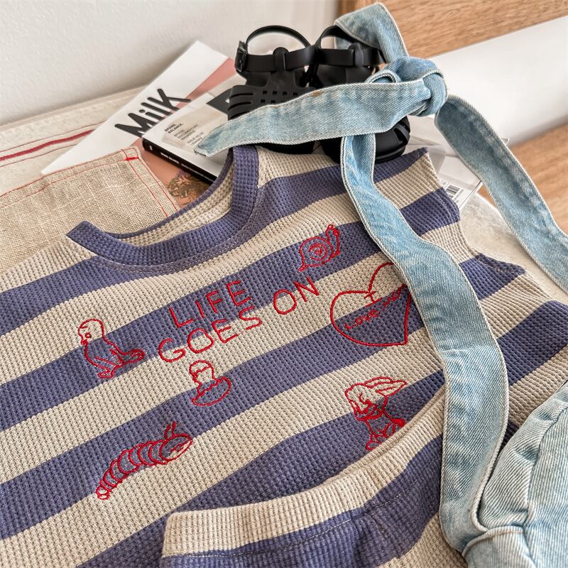 【海外からの取り寄せ】2023夏新作 子供服 カジュアル セットアップ 半袖Tシャツ ショートパンツ 可愛い ストライプ柄 #[ckd1091762_22000]【送料込み】【250517】
