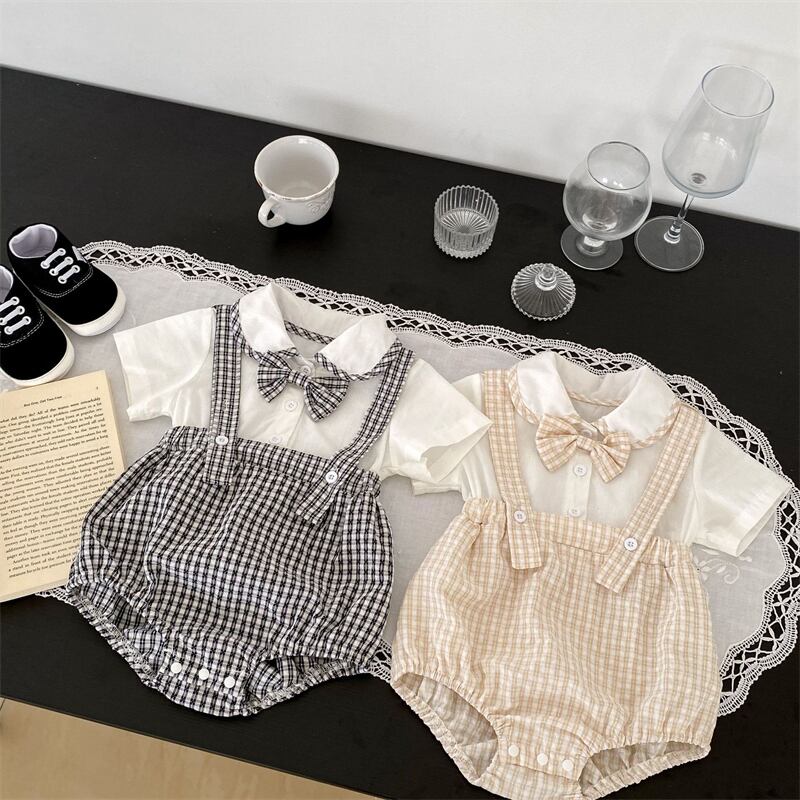 【海外からの取り寄せ】ins夏新作 ベビー服 男の子 フェイクレイヤード ロンパース チェック柄 可愛い おしゃれ 柔らかい #[ckd1091741_17800]【送料込み】【250704】