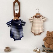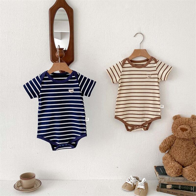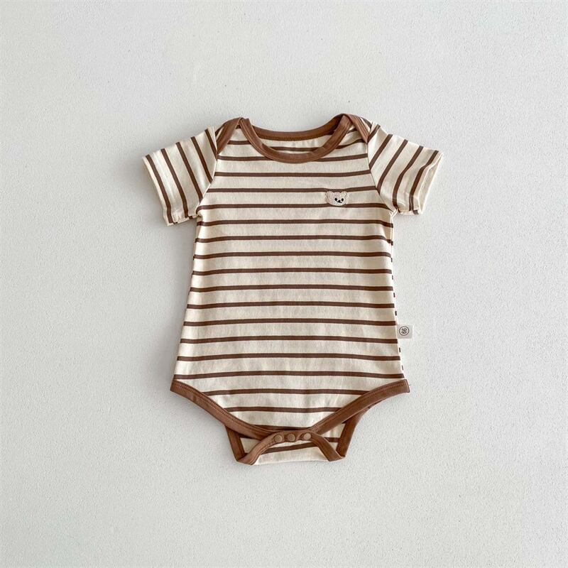 【海外からの取り寄せ】2024夏新作 ベビー服 クマ ストライプ柄 ロンパース 半袖 柔らかい 新生児 出産祝い 子供服 #[ckd1093601_10200]【送料込み】【250422】
