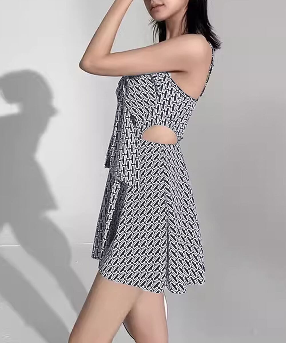 大人かわいい体型カバーとお洒落な肌チラ見せが特徴の総柄ワンピース水着