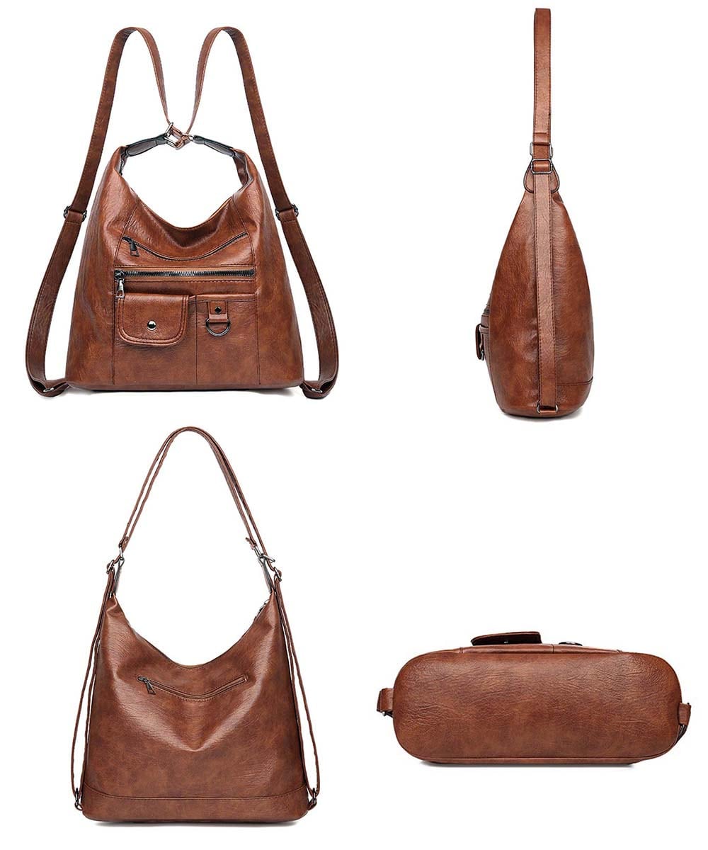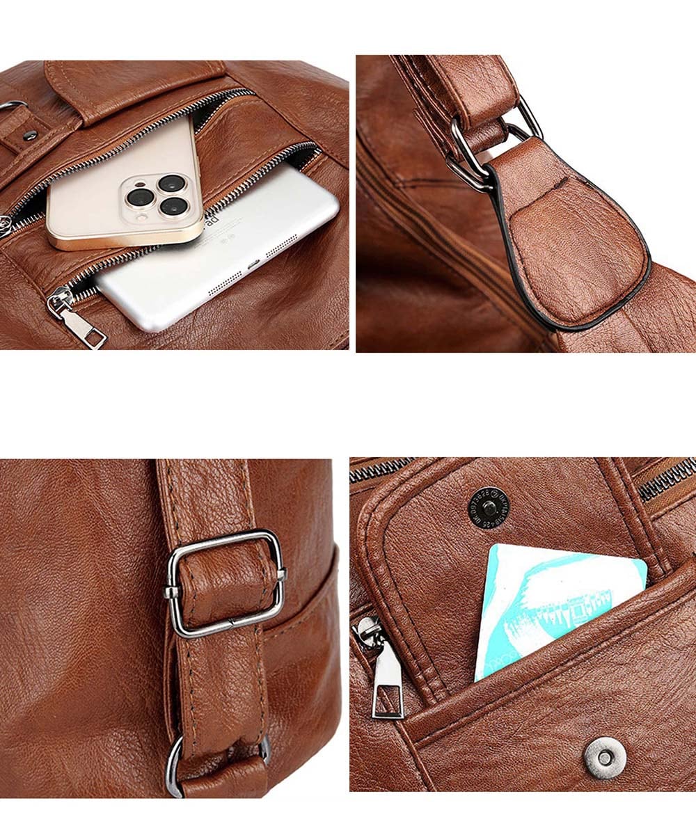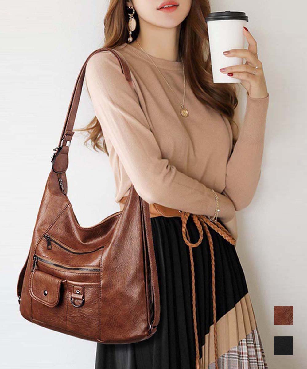 レディース PUレザー 肩掛けバッグ おしゃれ レトロ 柔らかい かばん 大容量 ファスナー付き リュックバッグ