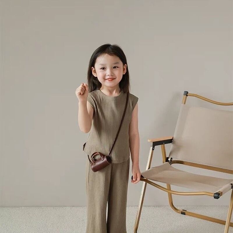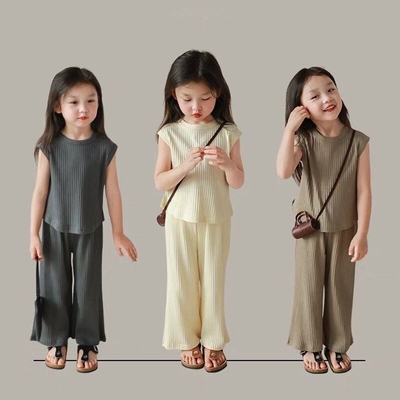 【海外からの取り寄せ】ins 2024夏新作 子供服 女の子 冷感 セットアップ ベスト ロングパンツ カジュアル 涼しげ #[ckd1093613_9500]【送料込み】【250517】