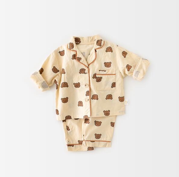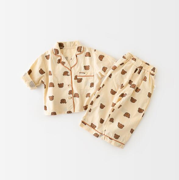 【海外からの取り寄せ】大人気 春秋夏 子供服 クマ チェック 水玉パジャマ 73-120 2点セット ホームウェア パジャマ #[ckd101263_19500]【送料込み】【250423】