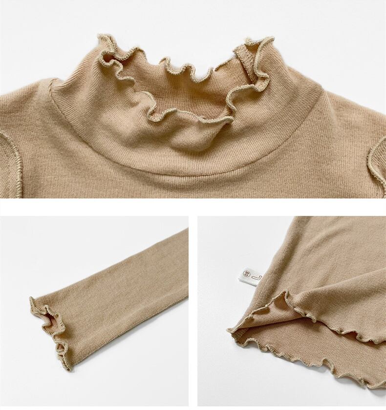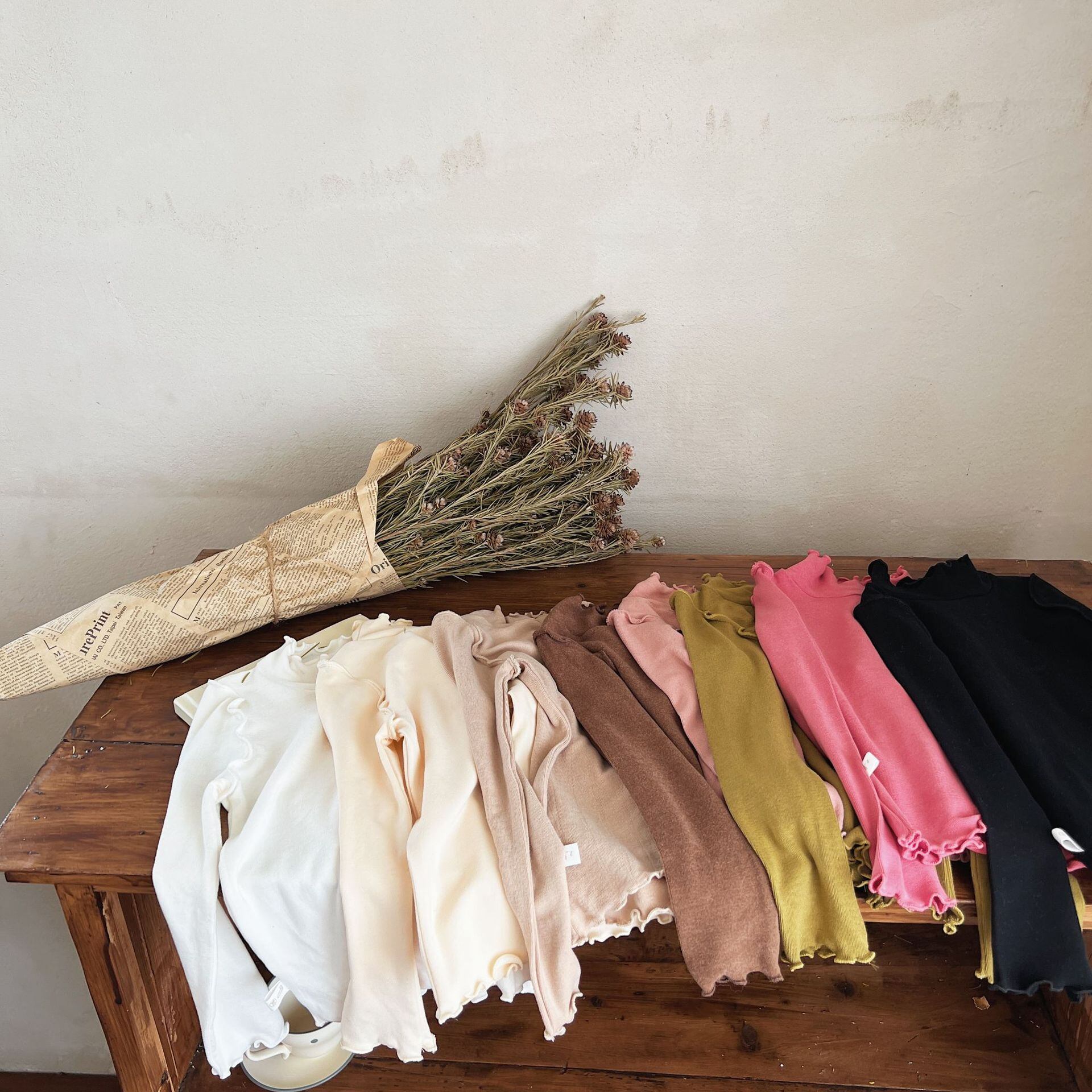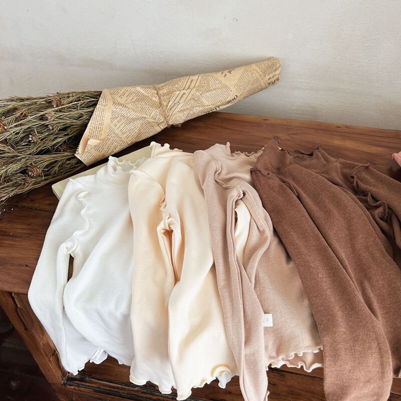 【海外からの取り寄せ】ins春新作 女の子 フリル インナーシャツ トップス カシミヤ 長袖Tシャツ 無地 可愛い 子供服 #[ckd1091012_11000]【送料込み】【250503】