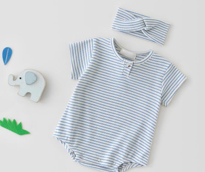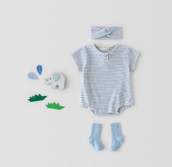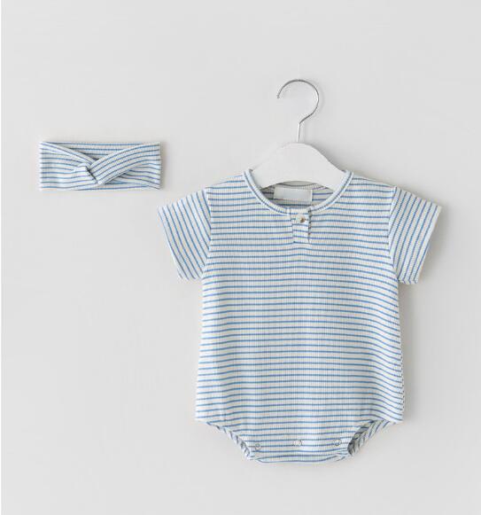 【海外からの取り寄せ】夏新作 子供服 ロンパース ヘアバンド 3色 ボーダー ベビー服 カジュアル キッズ #[ckd101458_11700]【送料込み】【250423】