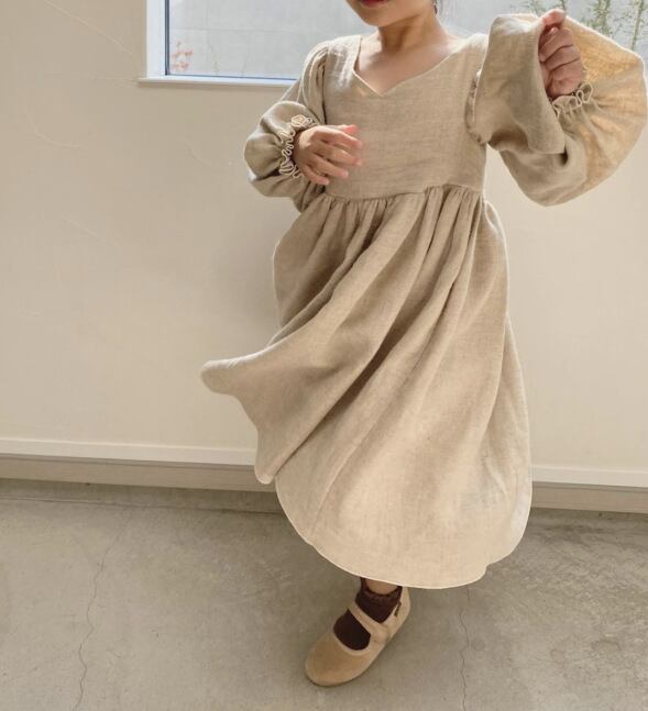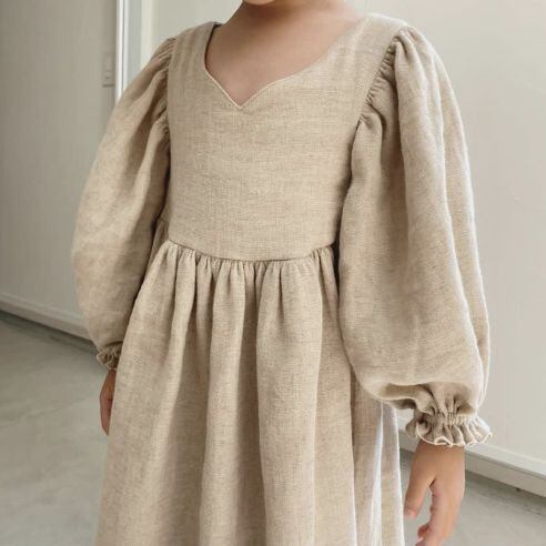 【海外からの取り寄せ】2023秋新作 子供服 女の子 ワンピース 長袖 リネン 可愛い おしゃれ 森ガール 綿麻 ゆったり #[ckd1092220_24000]【送料込み】【250504】