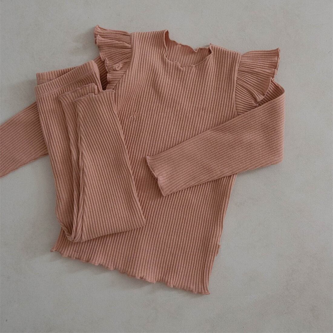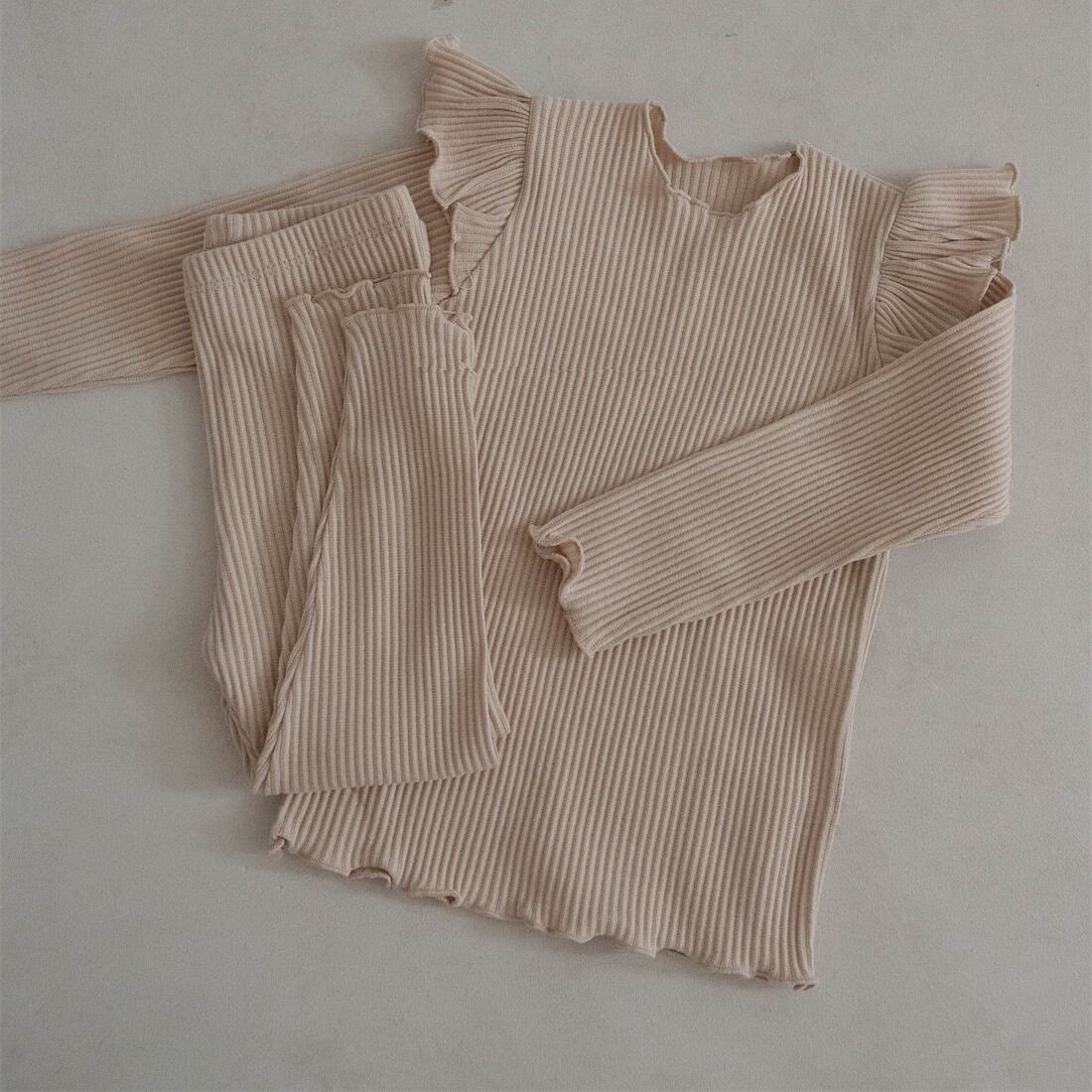 2023秋新作 ベビー服 リブ 長袖Tシャツ ロングパンツ 2点セット 無地 柔らかい 子供服 可愛い #[ckd1092227_17000]【送料込み】【海外からの取り寄せ】 【北海道・沖縄・離島は発送できません】