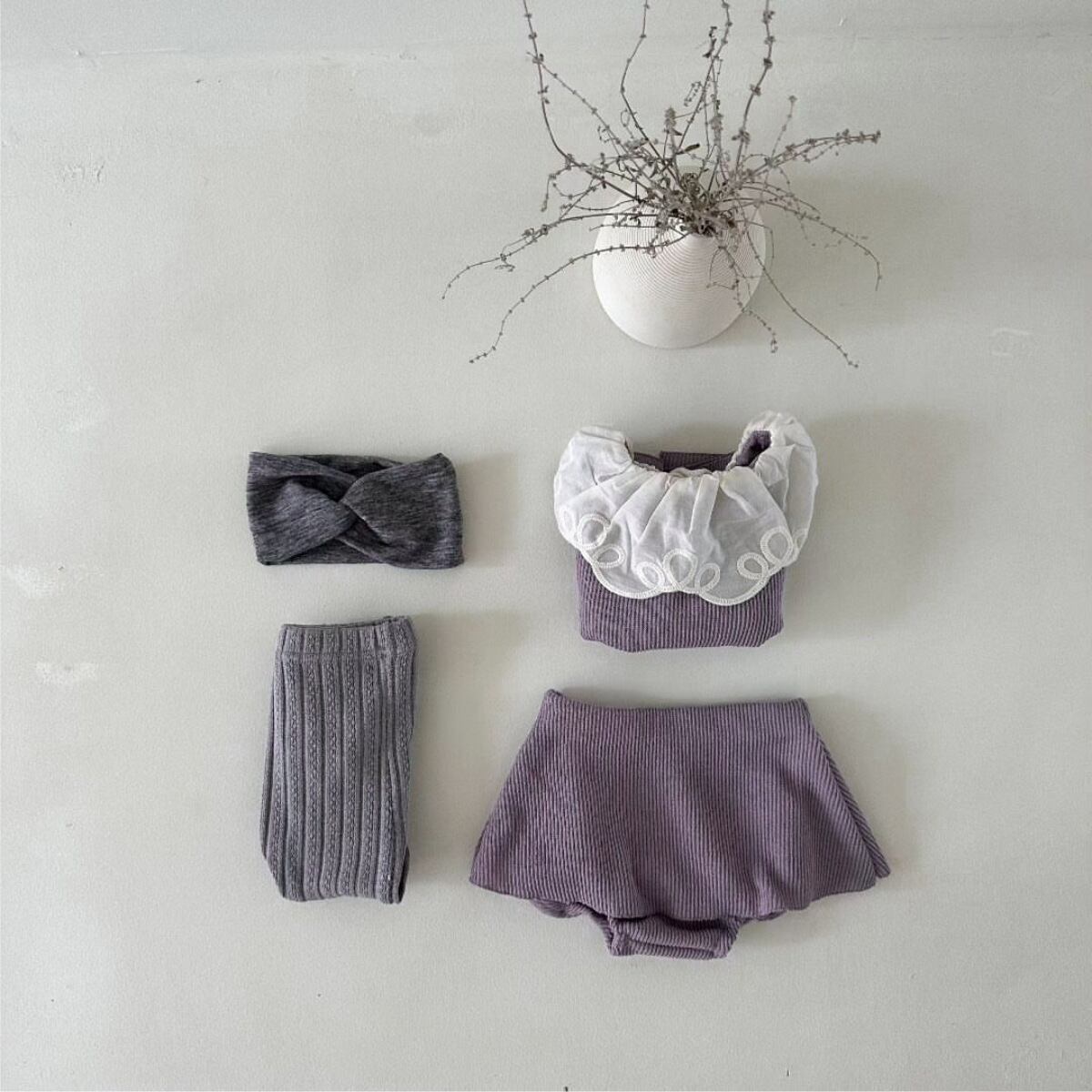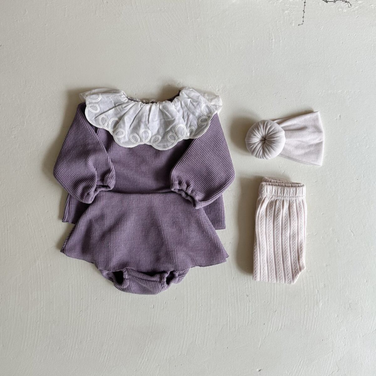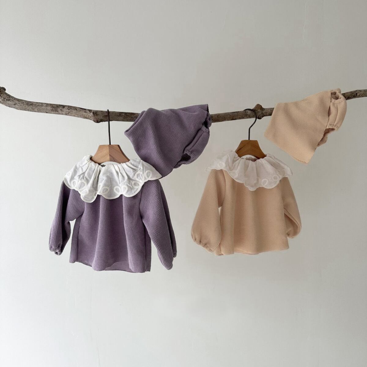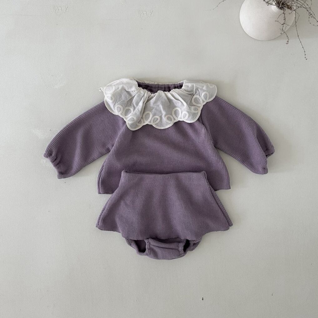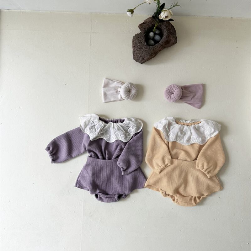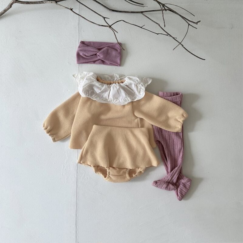 【海外からの取り寄せ】2023秋新作 ベビー服 リブ セットアップ 長袖Tシャツ ブルマー 無地 子供服 可愛い レース #[ckd1092721_25400]【送料込み】【250517】