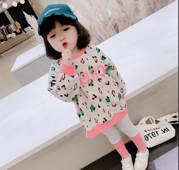 【海外からの取り寄せ】秋 女の子 2点セット 総柄 パーカー トップス ヒョウ柄 子供服 可愛い 長袖 オシャレ #[ckd102817_15100]【送料込み】【250513】