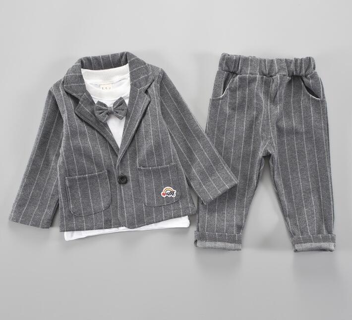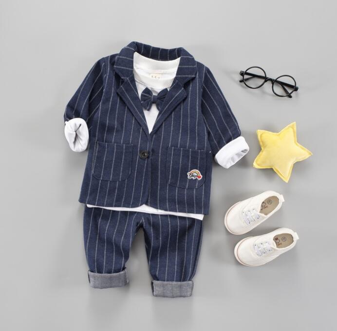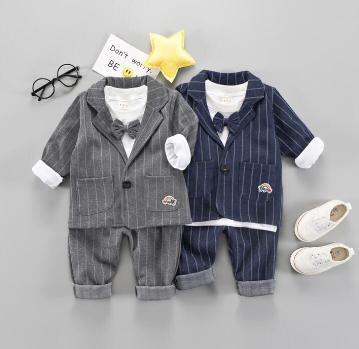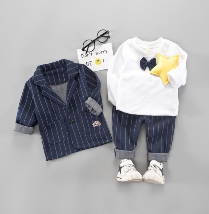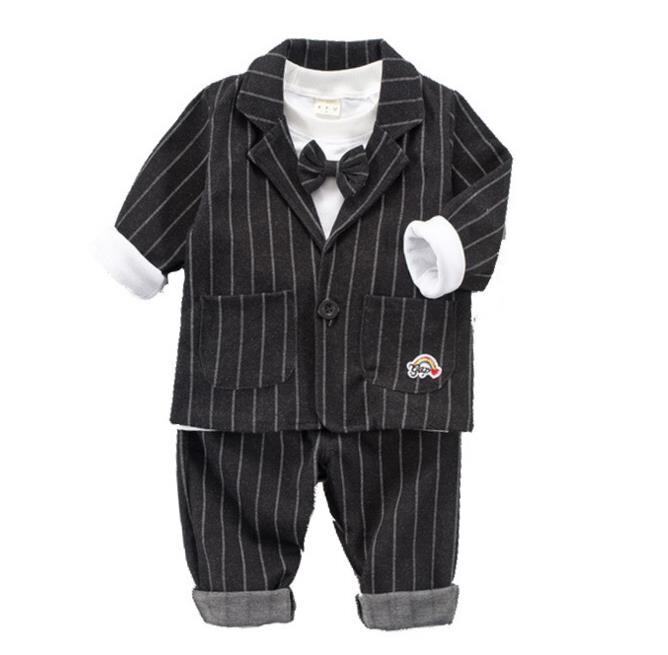 【海外からの取り寄せ】男の子 スーツ セットアップ 子供服 ストライプ柄 入園式 インナ コート パンツ 3点セット #[ckd103357_19300]【送料込み】【250823】