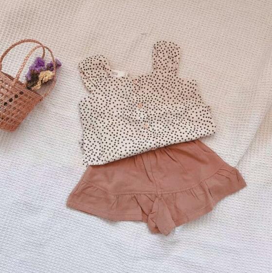【海外からの取り寄せ】夏新作 2点セット キャミソール+短パンツ 女の子 子供服 可愛い 水玉 キッズ 韓国ファッション #[ckd101358_14200]【送料込み】【250513】