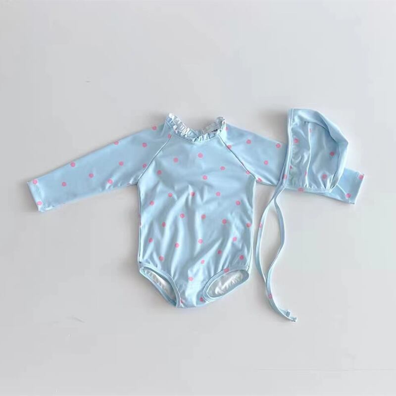 ins 韓国子供水着 ワンピース 海 練習用 ボンネット付き 立ち襟 女児 おしゃれ 子供服