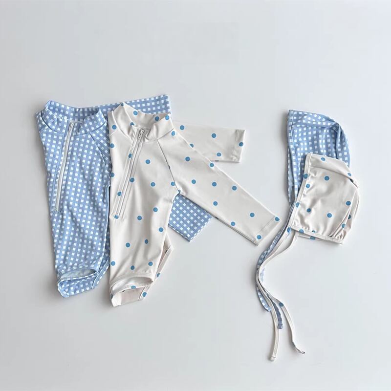【海外からの取り寄せ】ins 夏新作 赤ちゃん用 水着 スイミング 帽子付き 可愛い 水玉 ビーチ 温泉 男の子 女の子 #[ckd1093626_17000]【送料込み】【250718】