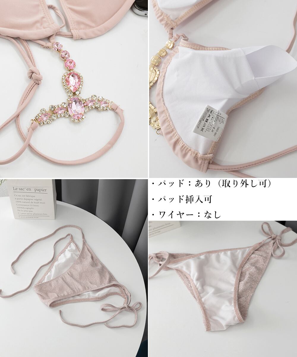 【日本倉庫からの発送】 ビキニ水着3点セット ビジュー付き水着 #[80MIAOMIAO-007_23800]【送料込み】【250727】