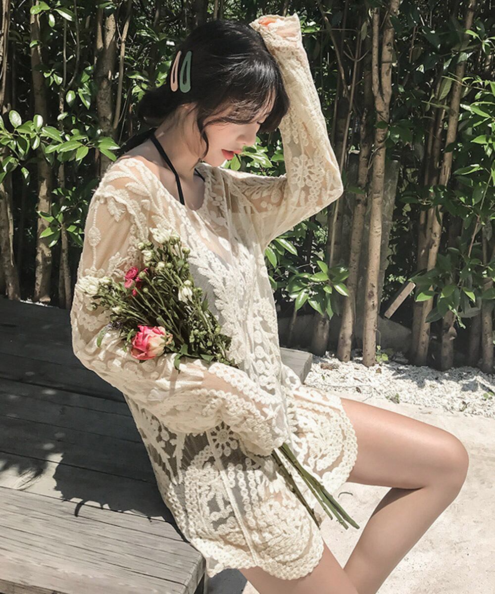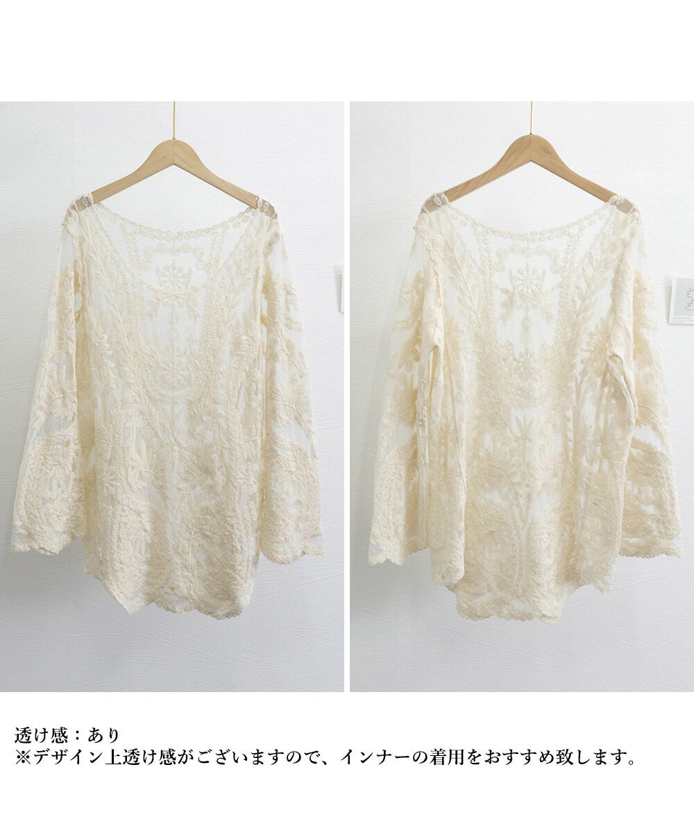 刺しゅう トップス 肌みせビーチカバー ビーチアウター人気