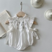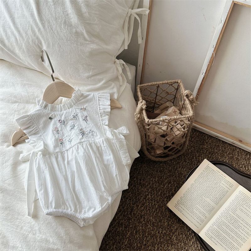 【海外からの取り寄せ】2024夏新作 ベビー服 刺繍花柄 立ち襟 ロンパース サイドリボン 女の子 おしゃれ 可愛い 子供服 #[ckd1093628_18200]【送料込み】【250508】