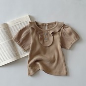2024夏新作 ベビー服 女の子 フリルカラー 半袖Tシャツ トップス 可愛い 柔らかい リブ 子供服 #[ckd1093641_12300]【送料込み】【海外からの取り寄せ】 【北海道・沖縄・離島は発送できません】