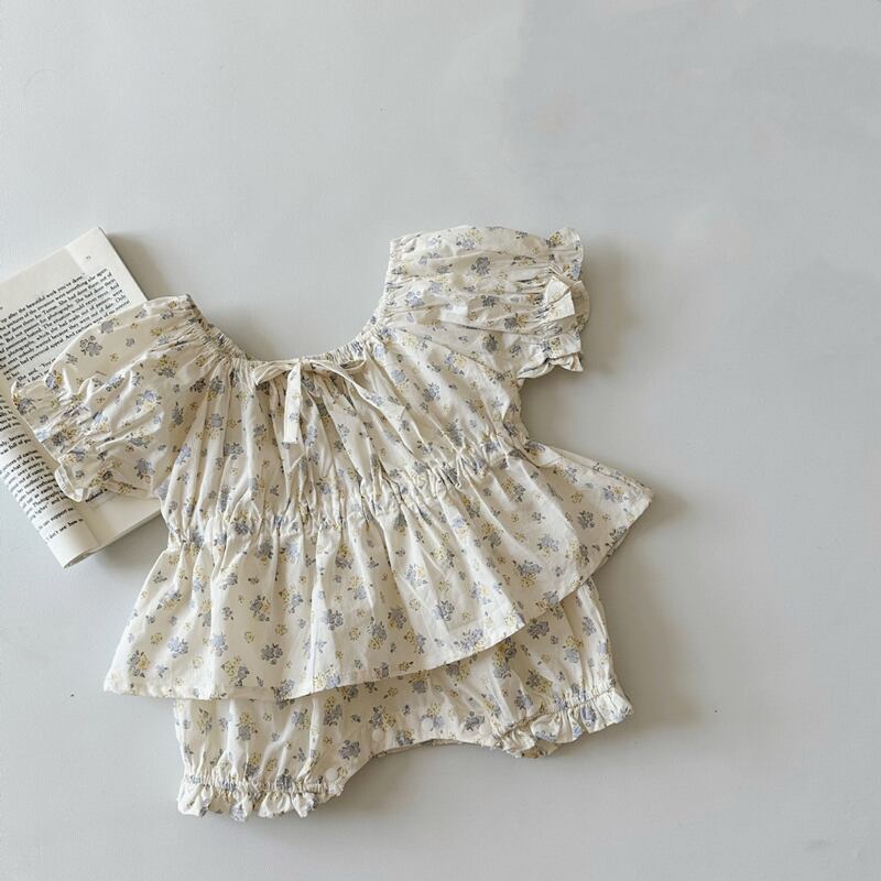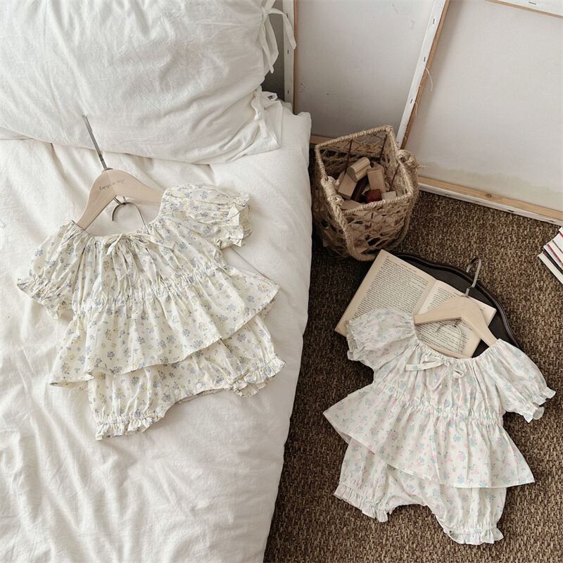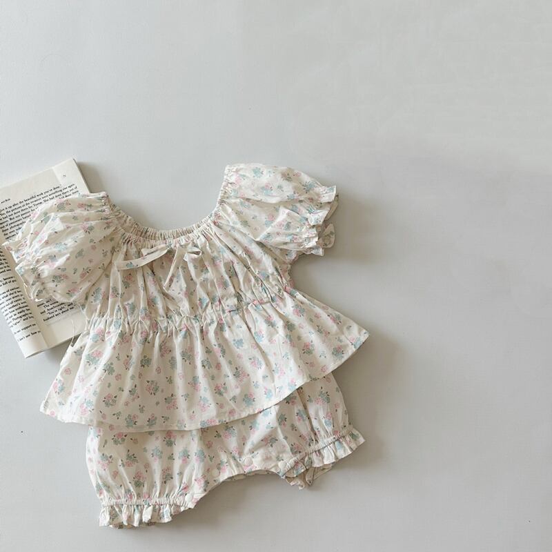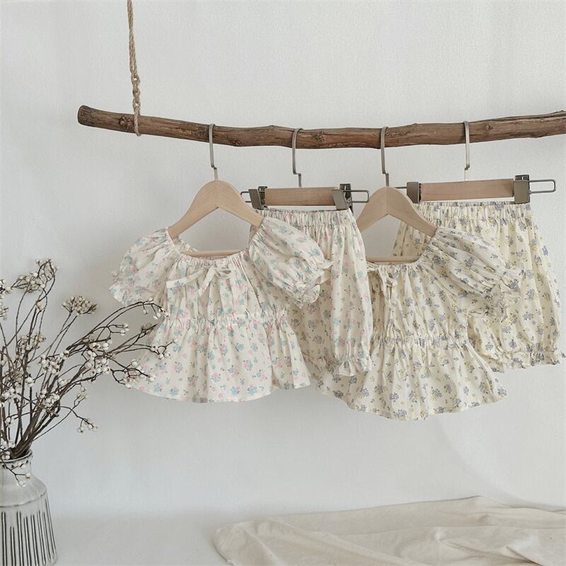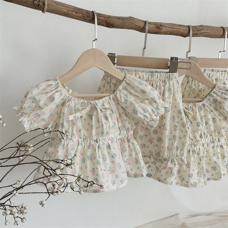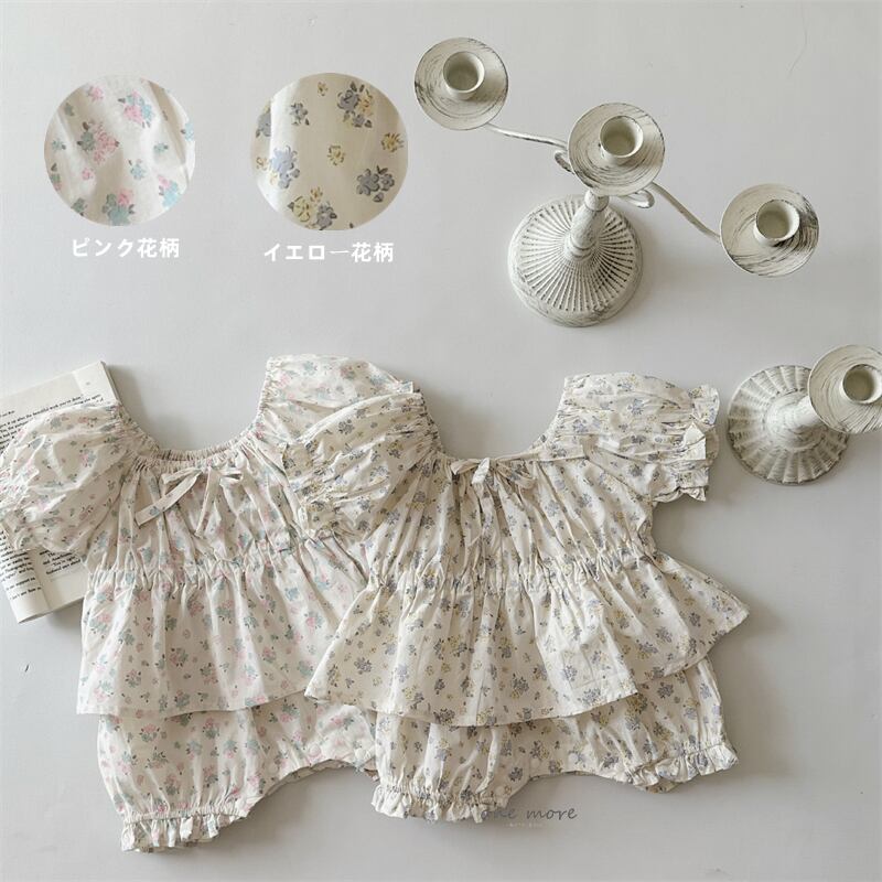 【海外からの取り寄せ】2024夏新作 ベビー服 女の子 花柄 パフスリーブ セットアップ ブラウス ハーフパンツ 可愛い 半袖 #[ckd1093634_19900]【送料込み】【250524】