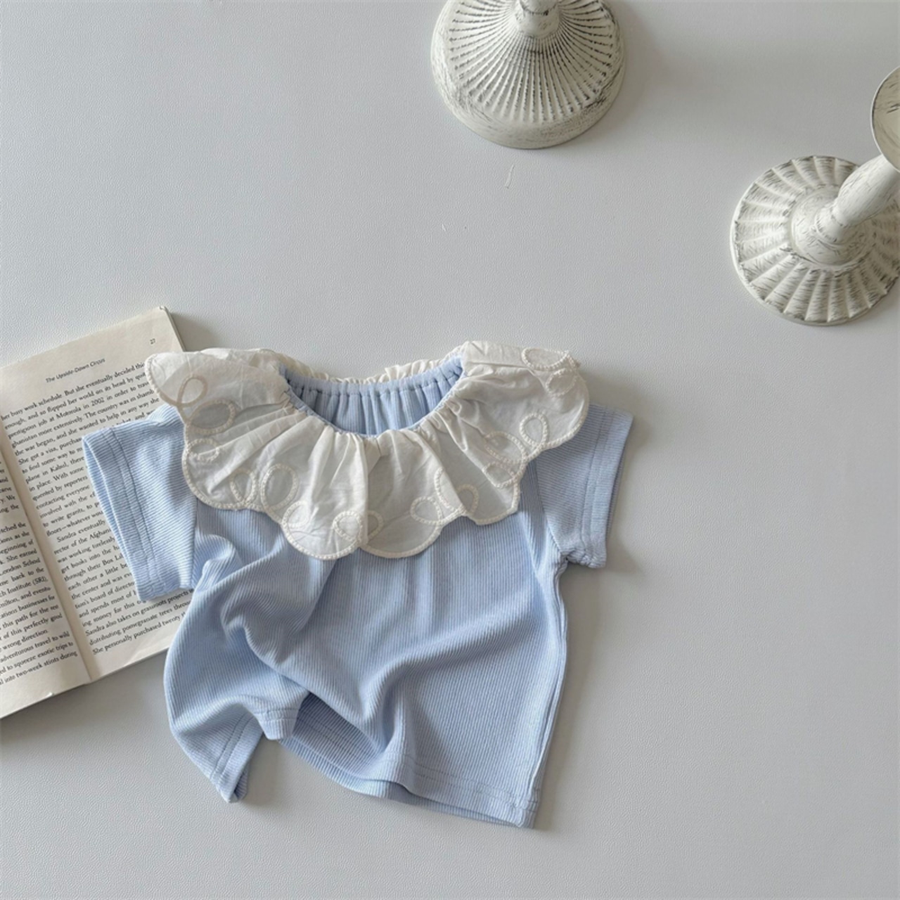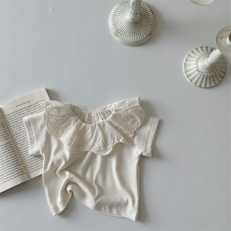 【海外からの取り寄せ】2024夏新作 ベビー服 レース ラッフル襟 半袖 Tシャツ カジュアル トップス 可愛い 女児 子供服 #[ckd1093631_11100]【送料込み】【250503】
